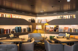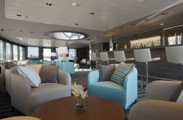 Sur le troisième pont se trouvent la réception, le bureau des excursions, une boutique et le salon principal d’une surface de 255 m2 (salon de thé, bar, programmation musicale, accès à la terrasse extérieure…).