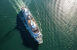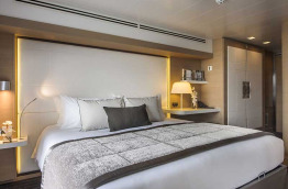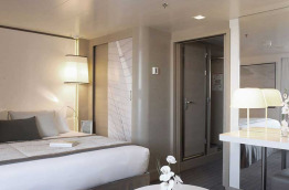 1 Suite de l’Armateur de 45 m2 et 9 m2 de balcon. Jusqu’à 2 passagers peuvent y dormir et bénéficier d’un sublime panorama sur la mer. Elles comptent notamment une table à manger et une grande salle de bains avec une baignoire de balnéothérapie. Les transferts aéroport-hôtel-port sont inclus dans son prix, tout comme 1 heure de soin au Spa.