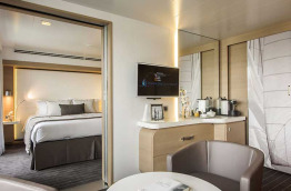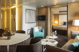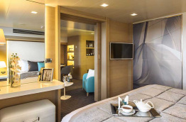 20 Suites Prestige réparties sur les ponts 5 et 6 : 36 m2 et 8 m2 de balcon. Elles sont composées de deux cabines communicantes, et disposent donc de deux entrées séparées. Vous y trouverez un lit double dans l’une, et un sofa convertible deux places dans l’autre. Chaque eSpace compte une salle de bains séparée.