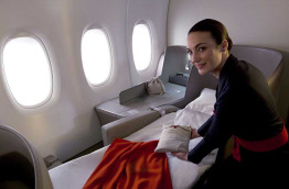 Air France propose sur certains de ses vols effectués en B777-300 au départ et à destination de Paris CDG, Singapour et Jakarta, sa nouvelle cabine « La Première » composée de 4 suites privatives. Cet espace préserve votre intimité avec un confort maximum grâce à son fauteuil large de 77 cm, se positionnant à votre gré en un lit long de plus de 2 mètres équipé d’un matelas futon, d’un oreiller et d’une couette Sofitel My Bed aux dimensions généreuses. Le programme à la demande met à votre disposition jeux, émissions, documentaires, musique et longs-métrages en haute définition sur un écran de 24 pouces.