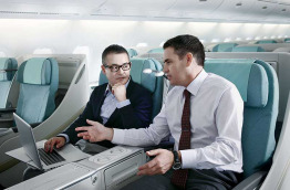 Les sièges Première classe "Kosmo Suites", larges de 67 cm, se transforment en véritable lit de 2 mètres de long. Le dossier et le repose-pied sont entièrement réglables.
