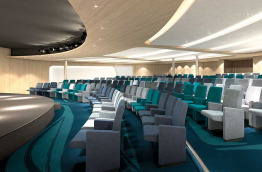 À l’avant du navire sur ce même étage se trouve une salle de théâtre pouvant accueillir 188 personnes, dotée des meilleures technologies en matière de son et lumière.