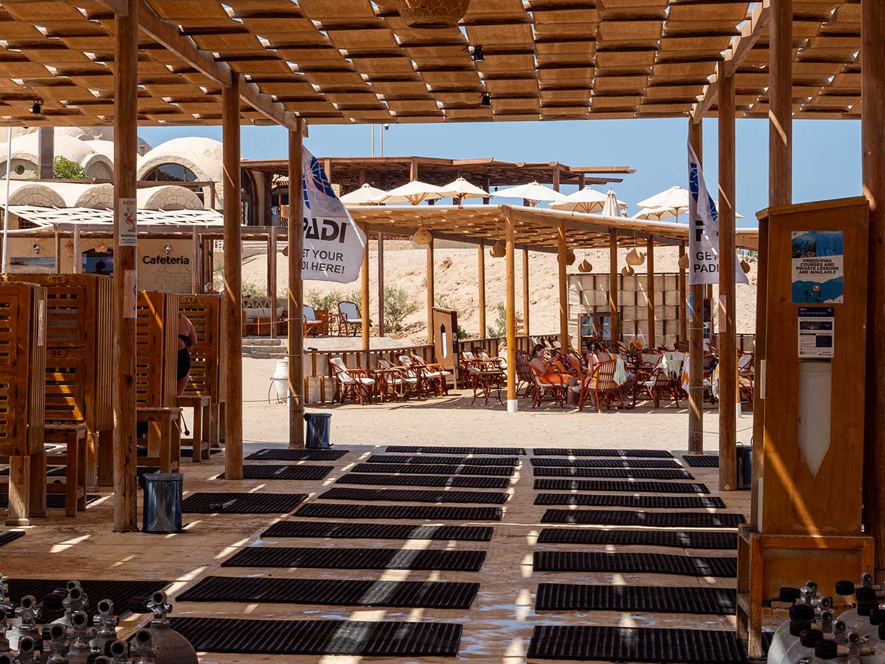 Le centre de plongée Red Sea Diving Safaris Marsa Shagra est un grand centre qui dispose de tout le matériel de location (faire la réservation avant le départ). Il est ouvert tous les jours de 8 h 00 à 18 h 00, et dispose d’une petite boutique ainsi que d’une salle de briefing.