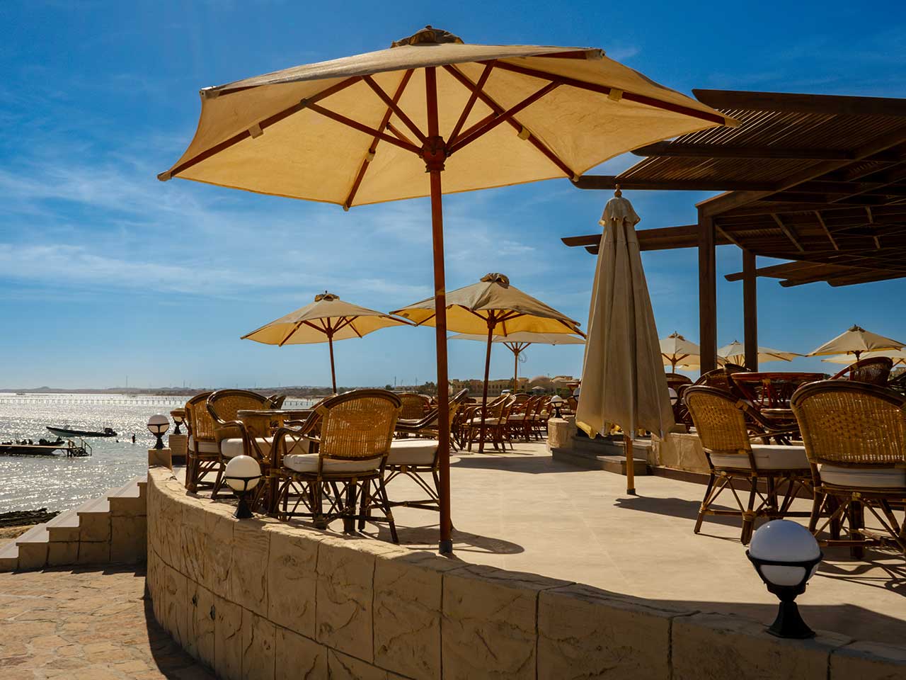 Le restaurant de Marsa Shagra Village est sur une petite butte avec vue sur la mer, la nourriture variée et copieuse est servie sous forme de buffet. Le restaurant dispose de l’air conditionné et si vous optez pour un déjeuner en terrasse, vous profiterez de la ventilation naturelle. Les repas et boissons sont inclus dans votre séjour (eau, thé et café filtre ainsi qu’une sélection de soft-drinks en bouteille). En dehors des horaires des repas, vous pourrez toujours acheter un en-cas, une glace ou une gaufre. Des pizzas faites maison sont également disponibles en supplément.