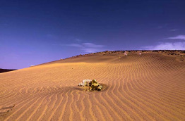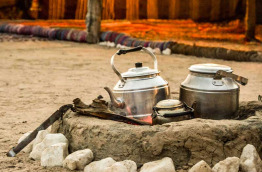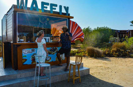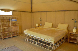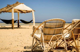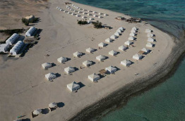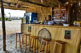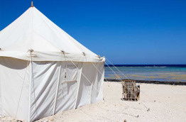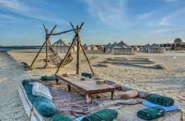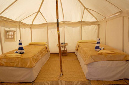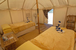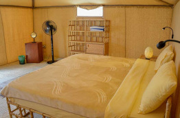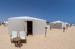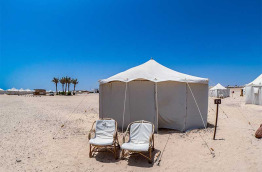 Enfin, les 40 Tentes Royales sont équipées d’un grand lit double (ou de deux lits simples), un ventilateur, mini-réfrigérateur, un coin salon avec des poufs et une petite table. L’espace commun des sanitaires n'est pas loin, la mer non plus.