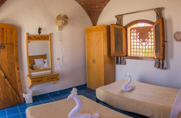 15 Huts sont situées à proximité de la plage avec une belle vue sur la mer au lever de soleil. Elles ont, elles aussi, des toits en dôme pour garder la fraîcheur, c'est typiquement l'architecture nubienne. Plus petites que les chalets (12 m2), l'ameublement est basique, avec néanmoins l'électricité, ventilateur et coffre-fort. Elles disposent de deux lits jumeaux.