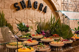 Le restaurant de Marsa Shagra Village est sur une petite butte avec vue sur la mer, la nourriture variée et copieuse est servie sous forme de buffet. Le restaurant est climatisé et si vous optez pour un déjeuner en terrasse, vous aurez droit à la climatisation naturelle. Les repas et boissons sont inclus dans votre séjour (eau, thé et café filtre, soft-drinks en bouteille). En dehors des horaires des repas, vous pourrez toujours acheter un en-cas, une glace ou une gaufre. Des pizzas faites maison sont également disponibles en supplément.