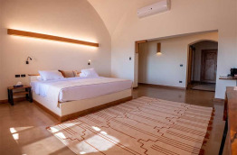 68 Deluxe Chalets de 24m2 offrent deux terrasses, qui vous donnent le choix de vous relaxer face au désert ou face à la mer. Ils bénéficient d’un grand espace de vie équipé de l'air conditionné, un lit double ou des lits jumeaux, une salle de bains, une penderie, coffre-fort, télévision, mini-réfrigérateur et nécessaire à thé et café. L'architecture en dôme permet de garder la fraîcheur.