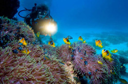 Vous pourrez vous régaler, la tête sous l'eau de jour comme de nuit, dans un jardin de corail peuplé d'une multitude de poissons.