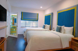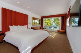 Les Ocean Drive Deluxe King mesurant environ 40 m2. Elles offrent des couleurs plus chaudes, inspirées du coucher de soleil, et sont équipées d’un lit king-size.