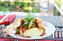 Tous les soirs, vous pourrez vous régaler avec la cuisine locale (ananas, mangues, goyaves, fruits de mer et poissons succulents) dans le restaurant de l’hôtel. Les repas sont servis sous forme de buffet, c’est plutôt simple, mais copieux et savoureux.
