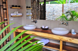 4 Paradise Suite bénéficient d’un emplacement de choix en bord de plage. Elles comprennent les mêmes facilités que les villas : superficie de 75 m2, salle de bains semi-ouverte, grand salon, minibar offert le premier jour. Elles ont en plus, une petite piscine privée sur la terrasse, ainsi qu’un salon extérieur pour profiter de l’air tropical et de la vue sur la mer, à l’ombre.