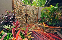 6 Paradise Garden Bungalow, strictement identiques, sauf la douche extérieure qui est plus grande et entourée de végétation.