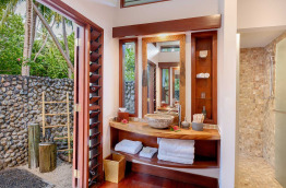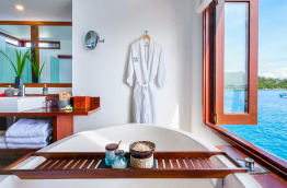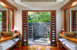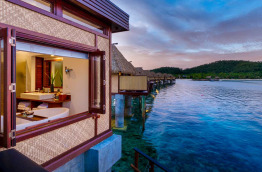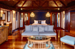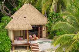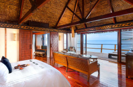Enfin, les 10 Over-Water Bures construites sur pilotis sont uniques à Fidji. La salle de bains est équipée d'une douche et d'une baignoire avec vue sur la mer. La chambre spacieuse est séparée, et dispose également d'un petit coin salon. La superficie intérieure fait 60 m2. Vous pourrez vous relaxer et profiter de la vue depuis votre terrasse privée qui offre un accès direct à la mer à marée haute. La terrasse de 31 m2 comprend une belle partie ombragée équipée de chaises longues.