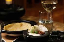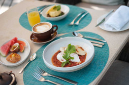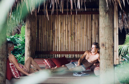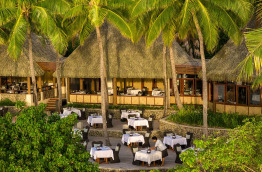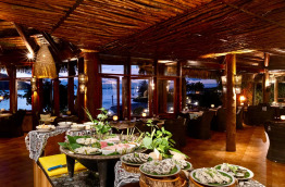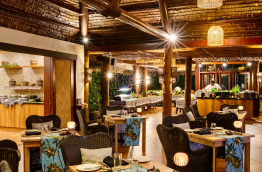 Le restaurant Fijiana est une construction très aérée et haute de plafond, qui comprend en fait quatre zones isolées afin de préserver un maximum d’intimité. Il offre une vue superbe sur le lagon et les jardins. Des tables sont dressées en intérieur, ou en plein air sur la terrasse.