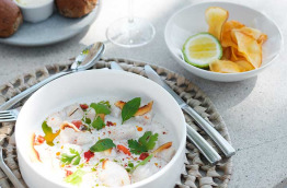 Likuliku Lagoon Resort propose une formule unique en pension complète. Les repas sont concoctés par un Chef à la cuisine créative, mettant en avant les produits locaux variés des îles Fidji.