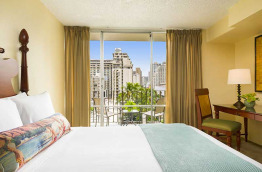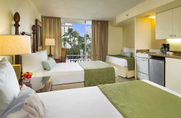 Plus spacieuses avec 27 m2, les 170 chambres City View with Kitchen sont conçues pour accueillir jusqu’à 4 personnes car elles sont pourvues d’un lit king-size ou de deux lits doubles. Cette catégorie est équipée en plus d’une petite kitchenette avec four et plaques de cuisson, ainsi que de tous les ustensiles de cuisine. Les Diamond Head View with Kitchen sont identiques mais offrent une jolie vue sur Diamond Head depuis le balcon.