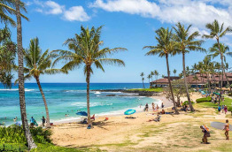 Côté océan, la plage devant l’hôtel est magnifique, spacieuse, avec du beau sable fin. La mer est plutôt calme, avec des vagues à quelques mètres du large, mais elle est accessible à tous. Même les plus jeunes enfants pourront s’entraîner aux plaisirs du « bodyboard » sous votre supervision. La plage de Poipu Beach Park se trouve à 5 minutes à pied en longeant la plage. Elle est surveillée, et il est fréquent d’y observer des phoques moines en journée, ou des tortues tôt le matin.