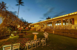 Un seul restaurant dans l’hôtel, le Plantation Gardens Restaurant & Bar, ouvert uniquement au dîner. C’est un bel endroit, dans un bâtiment colonial ancien. Vous pourrez prendre vos repas à l’intérieur ou sur la grande terrasse qui fait le tour du restaurant. Il se trouve dans un environnement très agréable, dans les jardins de l’hôtel. Le chef propose une cuisine moderne aux saveurs du Pacifique.