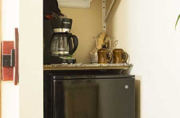 Les chambres sont équipées de salle de bains avec douche, télévision, accès internet Wi-Fi, nécessaire à thé et café, réfrigérateur et four à micro-ondes. L’air conditionné n’est pas disponible, par contre, un chauffage d’appoint est mis à disposition dans chaque chambre.