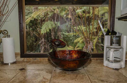 Le Chalet Kilauea est un hôtel pas comme les autres à l’orée du Parc national des Volcans. Il se trouve dans le petit village de Volcano, en pleine végétation d’arbres endémiques tels que le « ohia », fougères arborescentes et autres plantes fleuries. De jolis petits bassins peuplés de carpes ont également été construits autour des bâtiments. Vous êtes en pleine forêt tropicale !