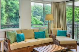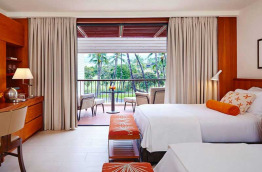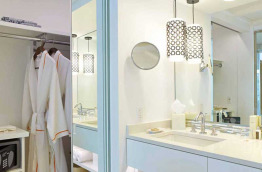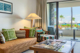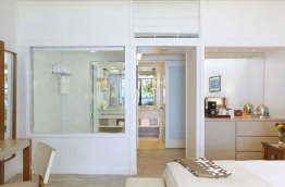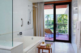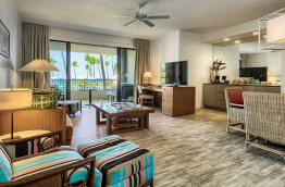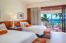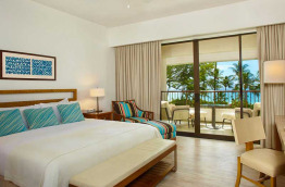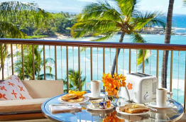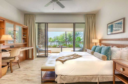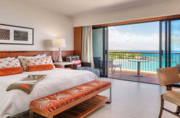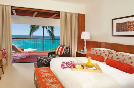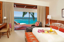 Plus spacieuses avec 81 m2, les chambres Ocean Front Deluxe bénéficient d’une plus grande salle de bains avec baignoire et douche, de deux balcons, et d’une belle vue sur mer.