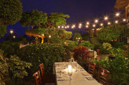 Le terrain est spacieux, les jardins sont beaux et bien entretenus avec notamment quelques pièces d’eau, mais surtout de superbes arbres et plantes à fleurs. Les parties communes sont concentrées sur la partie haute de la propriété ; elles comprennent la réception, le restaurant, et plusieurs salons. Un niveau en dessous, on trouve la piscine, et les bungalows sont ensuite disséminés sur plusieurs niveaux partout sur la propriété de façon à préserver un maximum de calme pour chacun.