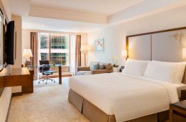Les Pacific Grand Rooms d’environ 35 m2 offrent une vue sur la ville, tandis que les Deluxe Harbour View Rooms profitent d’une vue sur le port Victoria.