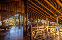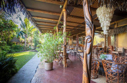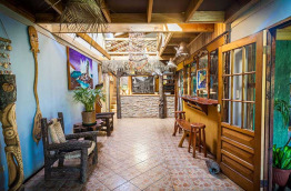 Le style de la construction, fait de bois et de pierre, lui confère une atmosphère exotique et polynésienne. Dès que vous entrez dans l’enceinte du Manavai Hotel, vous êtes transportés dans un autre monde, au cœur d’un joli jardin, et dans un environnement où de nombreuses sculptures locales en bois, et de peintures, contribuent à rendre le décor exotique.