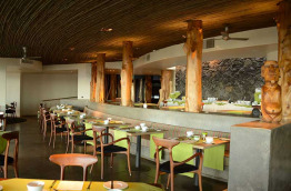 La décoration elle aussi fait la part belle aux matériaux naturels locaux, avec beaucoup de pierre, de bois, et parfois même des racines d’arbres en guise de décoration au mur.