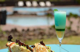 Le Vaikoa Pool Bar commence à l’intérieur pour se prolonger jusqu’au bord de la piscine. Il propose une carte composée d’en-cas pour les petits creux.