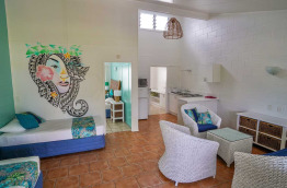 4 Cabana Suites sont composées d’une pièce unique regroupant l’espace chambre avec un lit king-size, et l’espace de vie avec une table, des chaises et la cuisine. Idéales pour un couple, il est cependant possible d’ajouter un lit simple pour accueillir une personne supplémentaire. Elles donnent sur la piscine et les jardins.