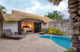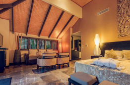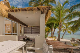 4 Beachfront Villa sont situées en front de mer, directement sur la plage, face au lagon. Le confort intérieur est sublimé par un magnifique lit à baldaquin très romantique, et un bain à jets. En extérieur, vous bénéficiez d’une grande terrasse pour profiter au maximum de l’atmosphère tropicale.