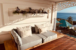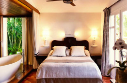 Les 2 Suites Créoles avec Pool Spa, situées dans le jardin, sont de petites villas individuelles d’environ 130 m2. Elles sont composées d’une chambre et d’un salon donnant sur une varangue avec vue sur la mer. À l’extérieur, vous pourrez profiter d’un solarium et d’un « spa de nage » privé de 4,40 m sur 2,30 m, équipé de la nage à contre-courant et de jets de massage. La salle de bains s'ouvre sur un beau jardin tropical privatif avec une douche extérieure. Comme les chambres, ces suites offrent le confort moderne et le raffinement d'une belle décoration créole.