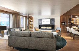 Les 4 Suites Duplex de 94 m2 et 26 m2 de terrasse. Elles se déclinent sur deux étages : le salon, la salle à manger et la terrasse avec bain à jets sont au premier niveau, tandis que la partie nuit, le dressing et la salle de bains sont à l’étage. Ces suites bénéficient d’une baignoire de balnéothérapie en plus de la douche, et des services d’un majordome.