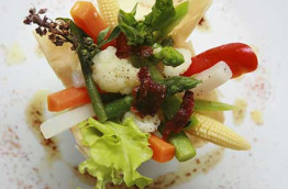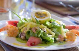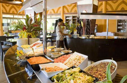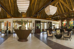 Un immense faré abrite la réception. En face de ce bâtiment se trouvent le bar Tibarama et le restaurant Barringtonia, très agréables, avec un mobilier moderne en bois sombre, où vous trouverez un grand choix de cocktails ainsi que des menus sous forme de buffet ou à la carte, que vous pourrez déguster face au lagon.