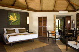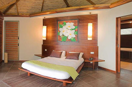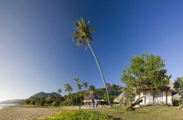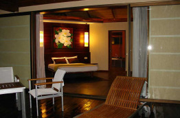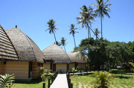 Dessinées sur le modèle du fruit barringtonia, les chambres de l'Hôtel Tiéti sont éparpillées dans le parc, face au lagon.