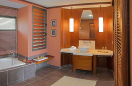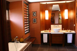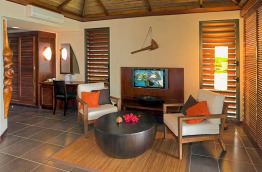 Les 10 Bungalows Mer, des suites de 40 m2 avec 5 m2 de terrasse, sont face à la très belle plage de Tiéti. Ils disposent d'une salle de bains avec baignoire.