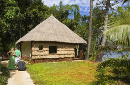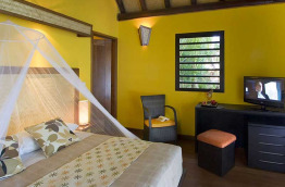 4 Bungalows Kanak de 33 m2, de construction traditionnelle, sont équipés de salle de bains avec grande douche, toilettes séparées, un brasseur d'air, réfrigérateur, bouilloire, kit anti-moutisque, coffre-fort, télévision à écran plat, téléphone, coin bureau, et terrasse avec transats donnant sur la mer. Ils accueillent deux adultes et un enfant maximum.