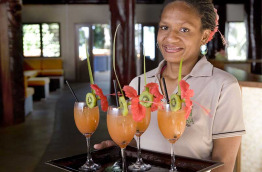 Une grande case kanak abrite la réception, le bar et le salon. Le restaurant Ka Mâ, au milieu des pins colonnaires et à l’ombre du grand banian, est ouvert sur une large terrasse et sur la baie de Port Boisé. Le chef vous proposera des repas mélanésiens et des produits locaux.