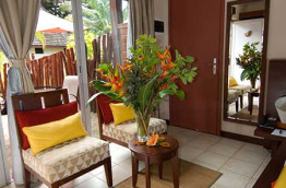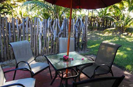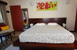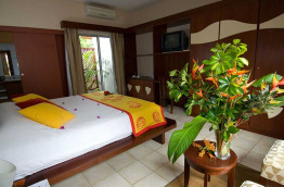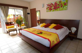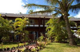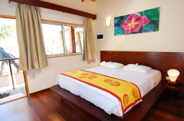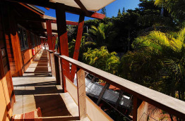 Au rez-de-chaussée, les 11 chambres Tropicales de 25 m2 sont plus lumineuses avec une baie vitrée sur l'arrière, et une petite terrasse privative.