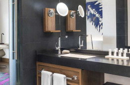 Les Suites Diplomatiques ont une superficie de 106 m2, une terrasse privée avec une vue magnifique sur le lagon, et une luxueuse salle de bains.