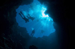 Blue holes est un incroyable site constitué de quatre trous dans le récif, connectés entre eux par un long tunnel. Seulement les plongeurs avec une certification technique peuvent s’aventurer en profondeur et parcourir les 4 grottes, les autres resteront à l’entrée, mais pourront admirer les magnifiques jeux de lumière. Vous passerez d’un trou à l’autre en restant à faible profondeur. Les murs sont enluminés par le corail. A la sortie, les requins s’amusent dans le courant pour le plaisir de tous les plongeurs.