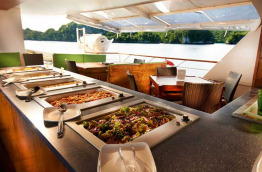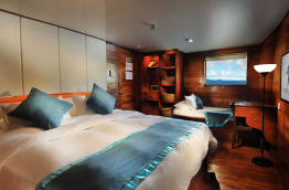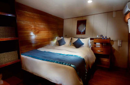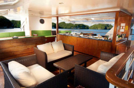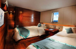 | Aménagements cabines | 11 cabines : 1 cabine quadruple, 6 cabines Deluxe et 4 cabines Stateroom (couchage lit double ou lits jumeaux selon les cabines). Serviettes de toilette, serviette de bain, sortie de bain, douche et toilettes privatives, air conditionné. |