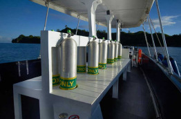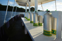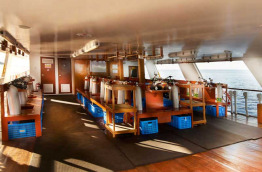 | Armement bateau | 1 moteur de 380 CV, vitesse : 10 noeuds. Annexe : 2 barges alu pour la plongée. Electricité : 220 V (prises anglaises, mais multiples prises universelles dans les cabines et adaptateurs disponibles). Eau douce : 9 400 litres + désalinisateur. GPS-radar-VHF, téléphone satellite, email. |