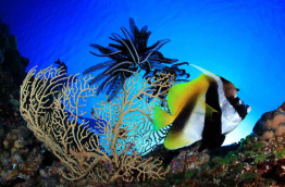 Sur certaines plongées, vous pourrez croiser des requins-léopards, gros requins-nourrices, des raies manta, raies-aigles, pastenagues, poissons-mandarins, des murènes-rubans, requins-baleines, et nautiles.