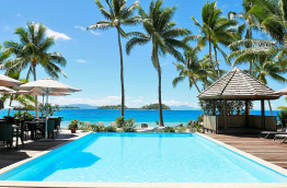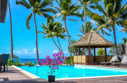 Vous pourrez profiter de la piscine extérieure entre cocotiers et bougainvillées, avec un bain à jets et une cascade tombant sur des rochers.