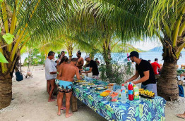 Vous débarquerez rapidement sur un motu, îlot de sable blanc. Les cuisiniers polynésiens partageront avec vous leurs astuces pour râper la noix de coco, tout en extrayant le lait qui servira à la préparation du déjeuner. Vous vous installerez ensuite les pieds dans l’eau et profiterez d’un pique-nique à base de plats locaux, de punch et de jus de fruits.