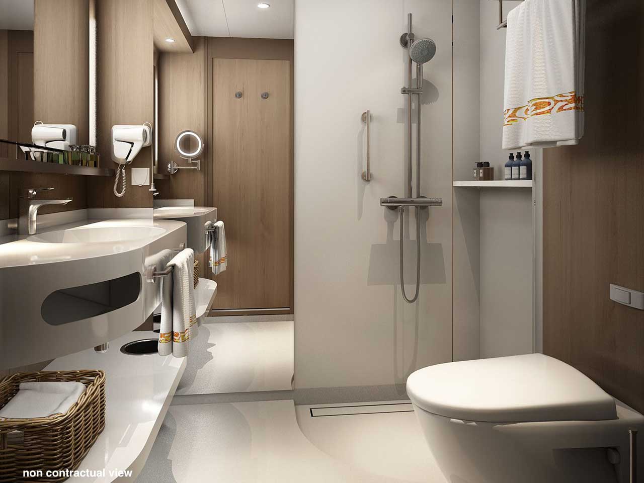 24 Cabines Standard mesurent entre 17 et 20 m2. Sans balcon, elles sont dotées d’un hublot, et se trouvent sur les ponts les plus bas : 2, 3 et 4.