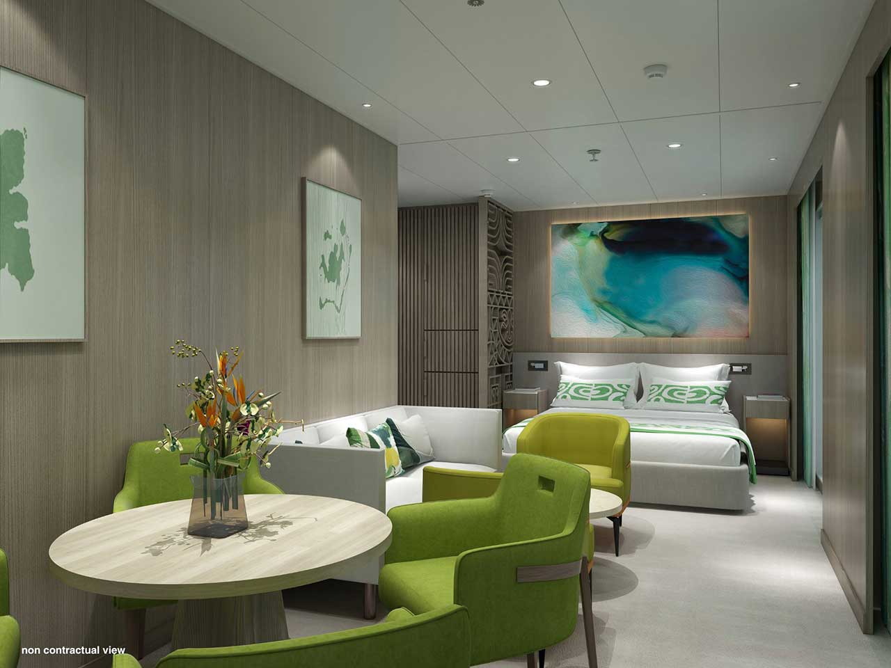 12 Suites Premium de 23 à 27 m2, avec un balcon de 5 à 7 m2, se trouvent sur le pont 6. On y retrouve une séparation entre le lit et le coin salon.